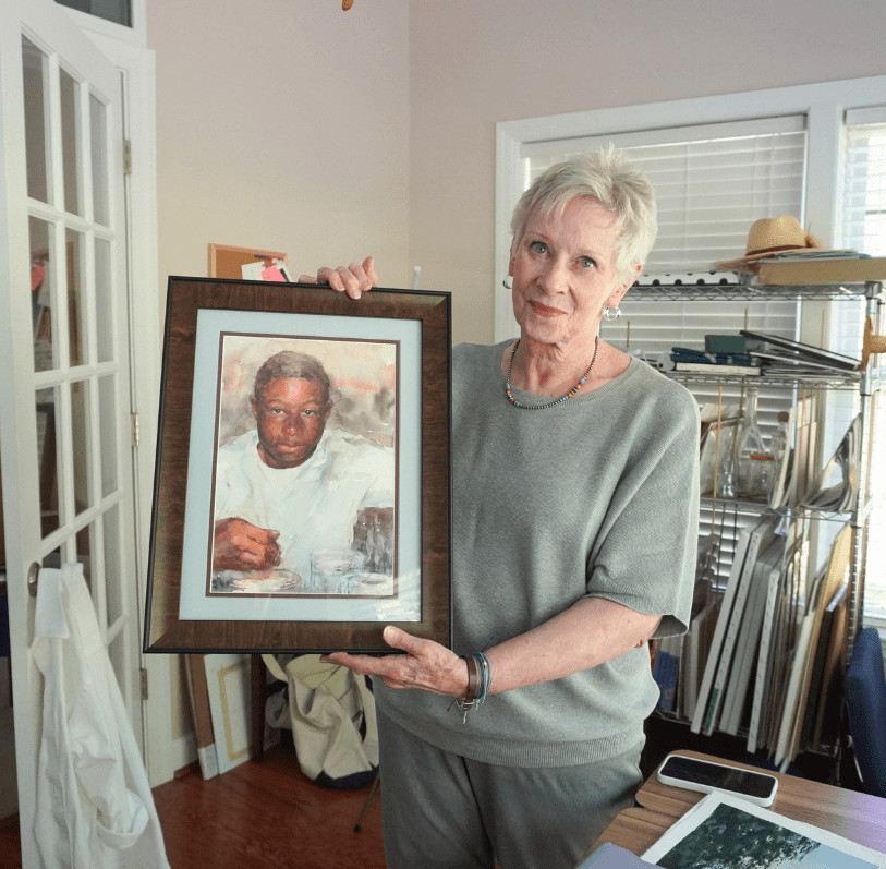 Covenant Woods resident Sarah Thimmesch has long found art to be both a creative outlet and a source of calm. A skilled painter who works in oil, watercolor, and pastel, Sarah has created portraits for fellow residents and taken part in several meaningful projects beyond our community. Most recently, she was selected to participate in the Souls Shot Portrait Project, a fine arts initiative that connects artists with families and friends of individuals whose lives were lost to gun violence.