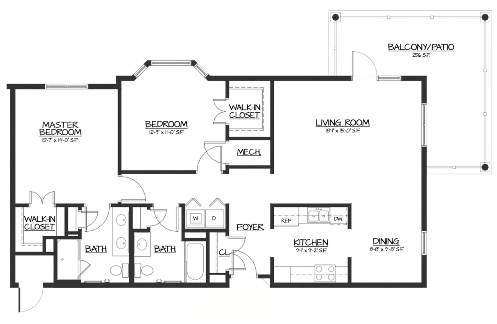 - Private balcony or patio on most floor plans